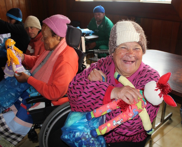 Nessa semana, fomos com o grupo Bonequeiras sem Fronteiras até Campos do Jordão, onde entregamos mantas, gorros, cachecóis e alguns mimos aos idosos e deficientes que vivem na Fundação Santa Cruz e no Sanatório Nossa Senhora das Mercês.